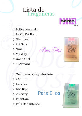 14 son las fragancias elegidas para nuestra versión de bolsillo, sí la línea pocket de 20ml tiene la forma y el tamaño justo para que lleves con vos a todos lados.